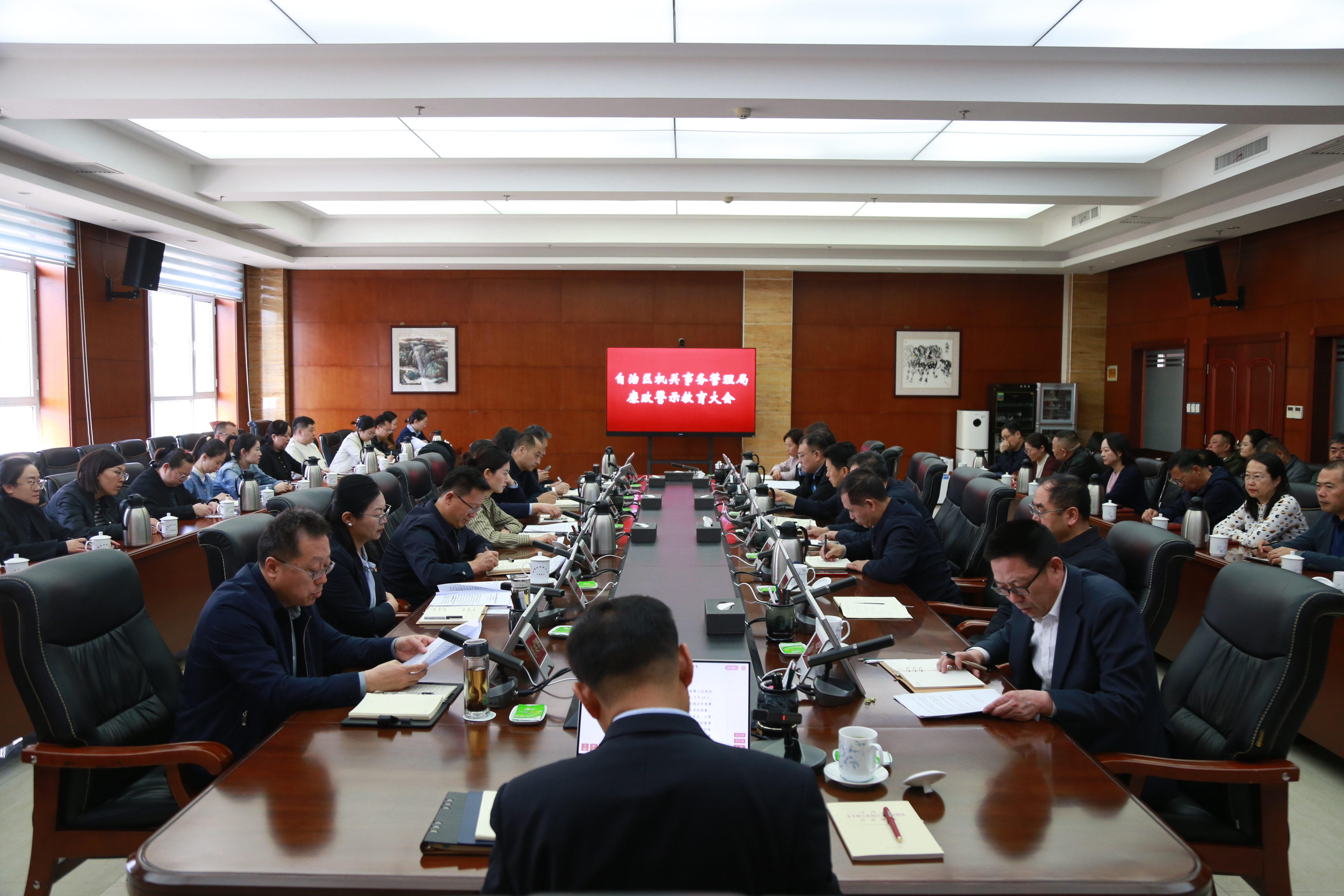 为进一步深化全面从严治党,强化党员干部廉洁自律意识,筑牢拒腐防变思想防线。3月24日,自治区机关事务管理局召开廉政警示教育大会。局党组成员、各基层党组织书记、局属单位班子成员、四级以上调研员、局机关全体干部60余人参会。