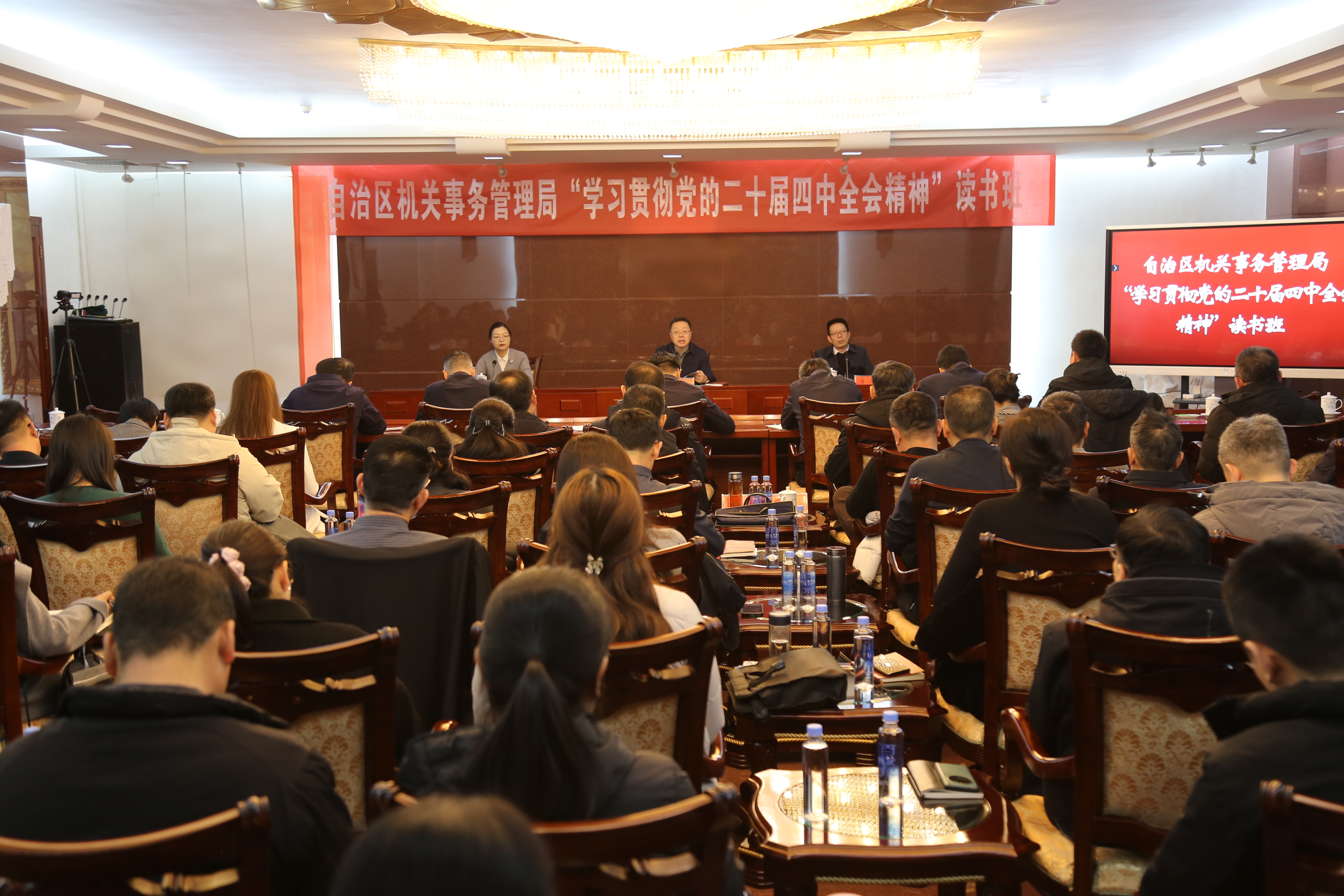 为深入学习贯彻党的二十届四中全会精神及自治区党委十三届十一次全会精神,统一思想、凝聚共识,12月9日,自治区机关事务管理局“学习贯彻党的二十届四中全会精神”读书班正式开班。局党组成员、各基层党组织书记、局属单位班子成员、科级以上干部,局机关全体干部共100余人参加。