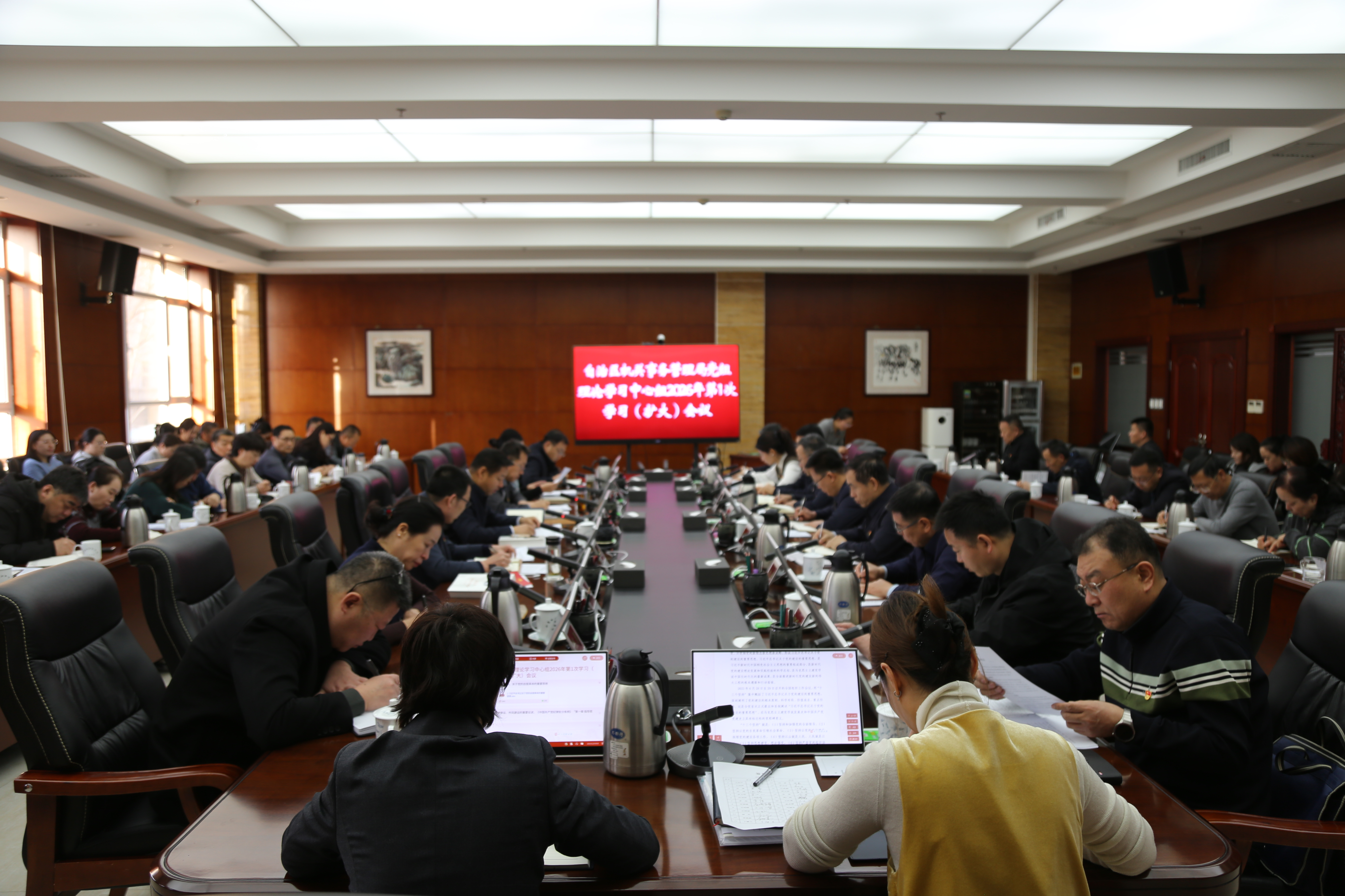 1月20日,自治区机关事务管理局召开2026年党组理论学习中心组第1次学习(扩大)会议,局党组成员、各基层党组织书记、局属单位班子成员、四级以上调研员、局机关全体干部60余人参加会议。