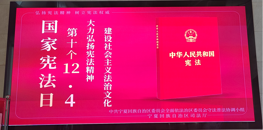 今年12月4日是第十个国家宪法日,为深入学习宣传贯彻习近平法治思想,弘扬宪法精神,按照自治区依法治区领导小组办公室的安排部署,自治区机关事务管理局结合工作实际,制定印发《“12·4”国家宪法日暨“宪法宣传周”活动方案》,组织开展宪法宣传系列活动。