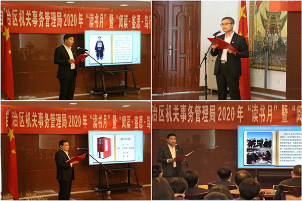 腹有诗书气自华,最是书香能致远。在“4·23世界读书日”这个全民读书的日子里,为进一步丰富机管局广大干部职工文化生活,为广大青年成长、成才搭建平台,努力营造全员阅读,书香机关的浓厚氛围,推进局机关文化建设。4月23日,机管局直属机关党委(人事与老干部处)举办了以“阅读·鉴思·笃行”为主题的世界读书日活动。局党组成员,局机关处室全体干部,局属各单位班子成员及中层干部代表,各团支部书记近100人参加了活动。
