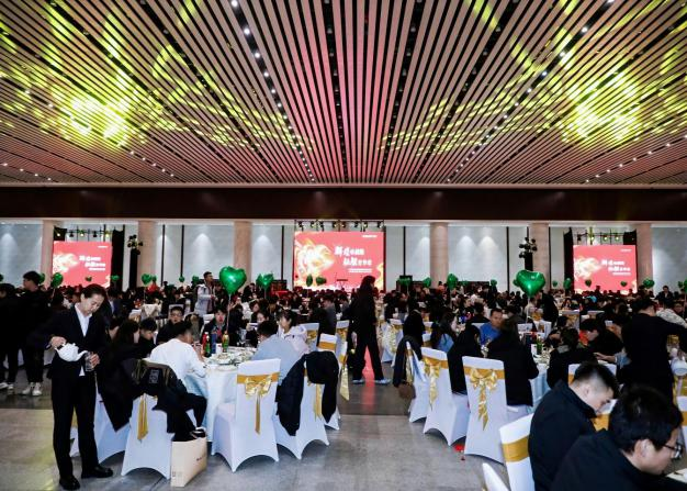 本次年会采用“会议+演出+宴会”一体化模式,充分整合宁夏国际会堂多功能空间资源,实现场地的高效利用。主会议厅作为年会主会场,承担领导致辞、颁奖盛典及嘉年华节目秀等议程,现场音视频系统运行稳定,灯光舞美配合精准,营造出庄重热烈的会议氛围。塞上江南厅承担宴会接待、互动抽奖、趣味游戏及乐队演出等多元化功能。现场精心设置宴席83桌,并专设1桌主宾席,满足900余位参会嘉宾的集中用餐需求。厅内同步规划氛围营造专区,配备专业舞台、高清LED大屏及全套音视频系统,确保视觉呈现清晰震撼、声场覆盖均匀通透,为嘉宾带来沉浸式的视听享受。