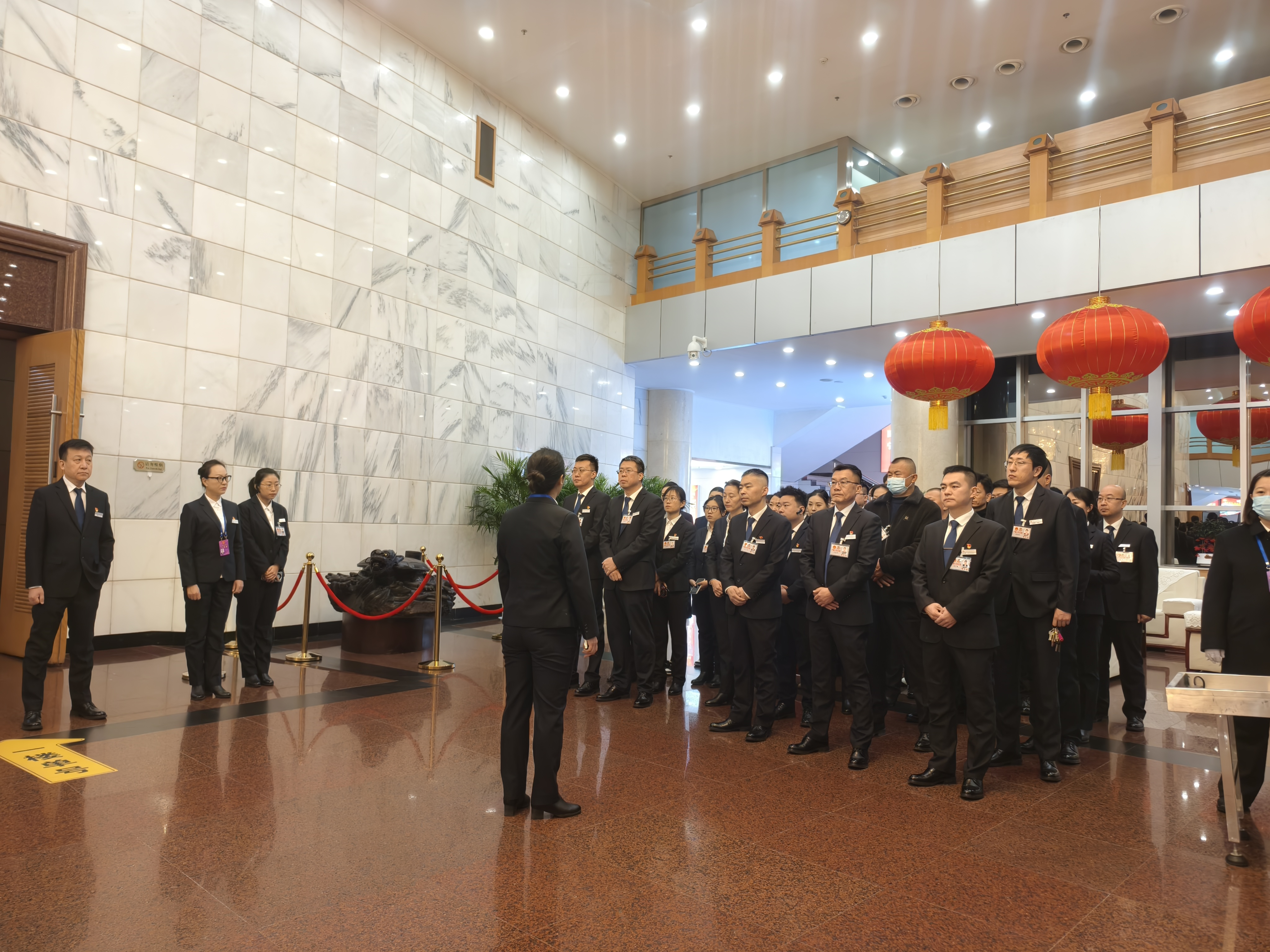 本次两会服务保障工作坚持在总结中精进、在传承中创新,以细节把控彰显人文关怀,以品质服务树立政务标杆。从全员标准化会务礼仪培训、统一配发皮鞋与着装,到主会场红地毯铺设、灯笼悬挂营造庄重氛围;从市县特产茶歇陈列的创新,到卫生间改造的升级等细微之处优化体验,每一处布置、每一项服务都凝聚着用心与匠心。在各外协单位的鼎力支持下,服务团队形象与会场整体氛围焕然一新,成功塑造了“专业高效、周到细致”的政务服务新形象,赢得与会代表委员们一致好评。