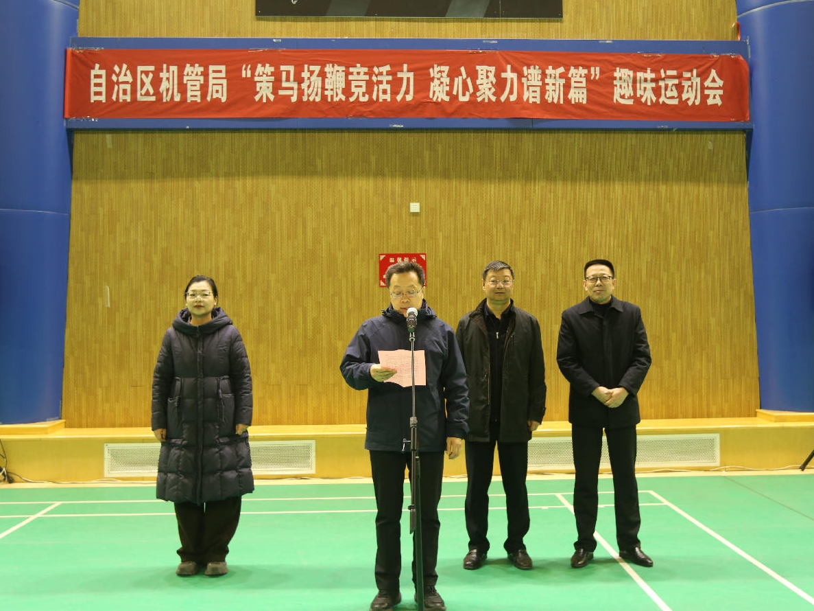 为贯彻落实深化机关文化建设、提升团队凝聚力要求,2月12日,自治区机关事务管理局举办“策马扬鞭竞活力,凝心聚力谱新篇”趣味运动会。局党组成员、副局长、二级巡视员肖延锋同志致开幕词,其他在家班子成员参加,特别邀请驻政府机关纪检监察组组长郎治钧同志莅临指导,局系统干部职工200余人参与活动。