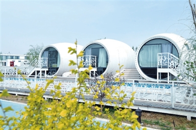 棚外春光正好。梨花、杏花、桃花开满枝头。闲庭信步,红梅杏、李子、苹果间种在两棚之间。橡木桶造型的民宿温馨又舒适,室外拓展、烧烤垂钓、农事体验总有一款体验满足您。