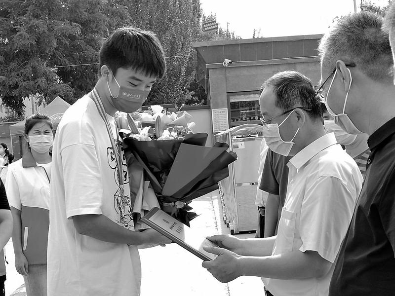 7月8日,马欢回到母校吴忠中学受到了校领导的热烈欢迎。吴荣 摄
