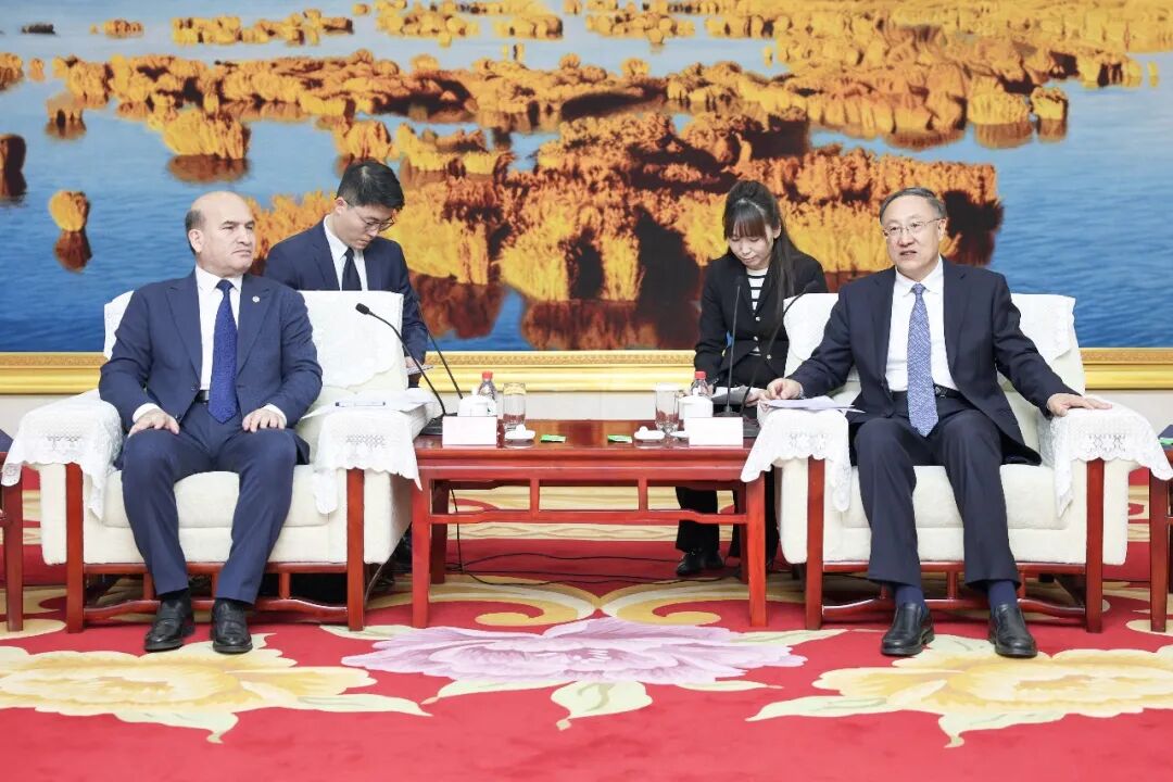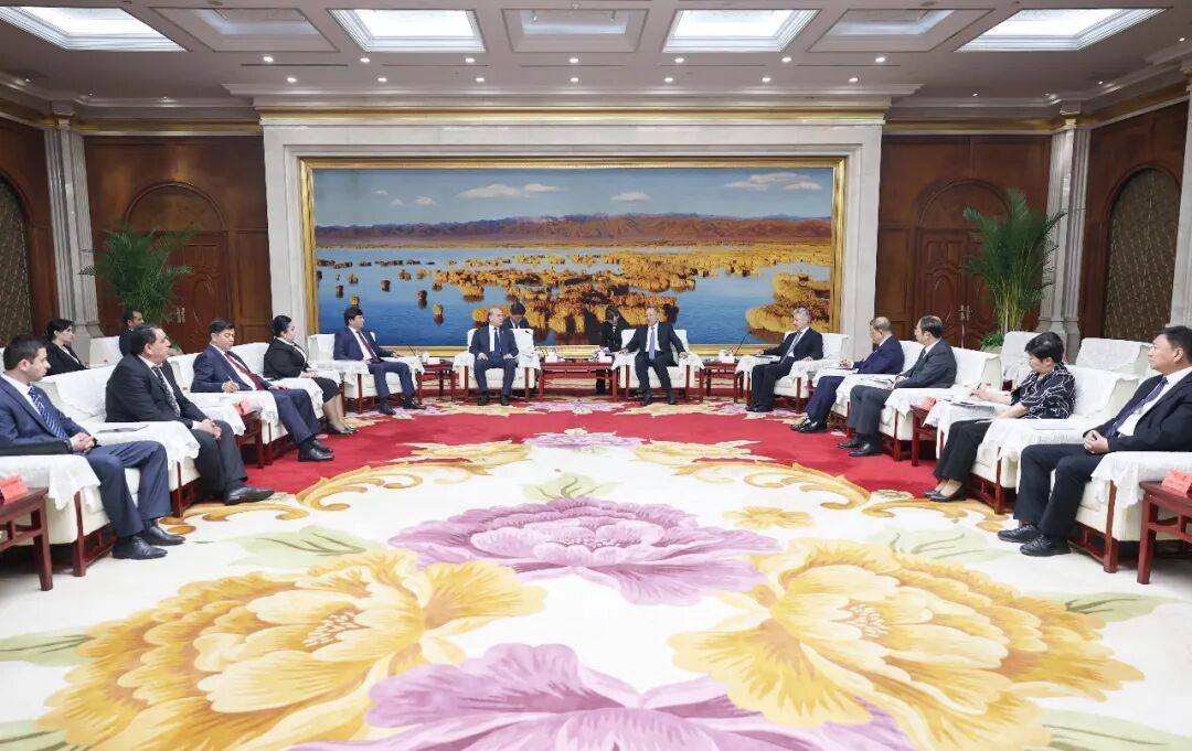 李邑飞代表自治区党委和政府对考察团一行表示欢迎。他说,中塔两国是山水相连的好邻居、好朋友、好伙伴,在习近平主席和拉赫蒙总统的战略引领下,两国关系快速发展提升为新时代全面战略合作伙伴关系。宁夏是中国西部的一块宝地,习近平主席亲自开创、亲自部署、亲自推动闽宁协作伟大事业,在中国共产党坚强领导下,这片热土发生了翻天覆地的历史巨变,谱写了各族人民团结奋斗、摆脱贫困、走向共同富裕的壮阔画卷。当前我们正深入学习贯彻习近平主席考察宁夏重要讲话精神,加快建设黄河流域生态保护和高质量发展先行区,努力创建铸牢中华民族共同体意识示范区,深度融入高质量共建“一带一路”,奋力谱写中国式现代化宁夏篇章。愿与塔方一道认真落实两国元首重要共识,深化党际交往,拓展经贸合作,在基层组织建设、减贫、生态治理等方面加强交流互鉴,推动清洁能源、特色农业项目合作,促进教育、旅游、青年等领域人文交流,为构建中塔命运共同体贡献力量。