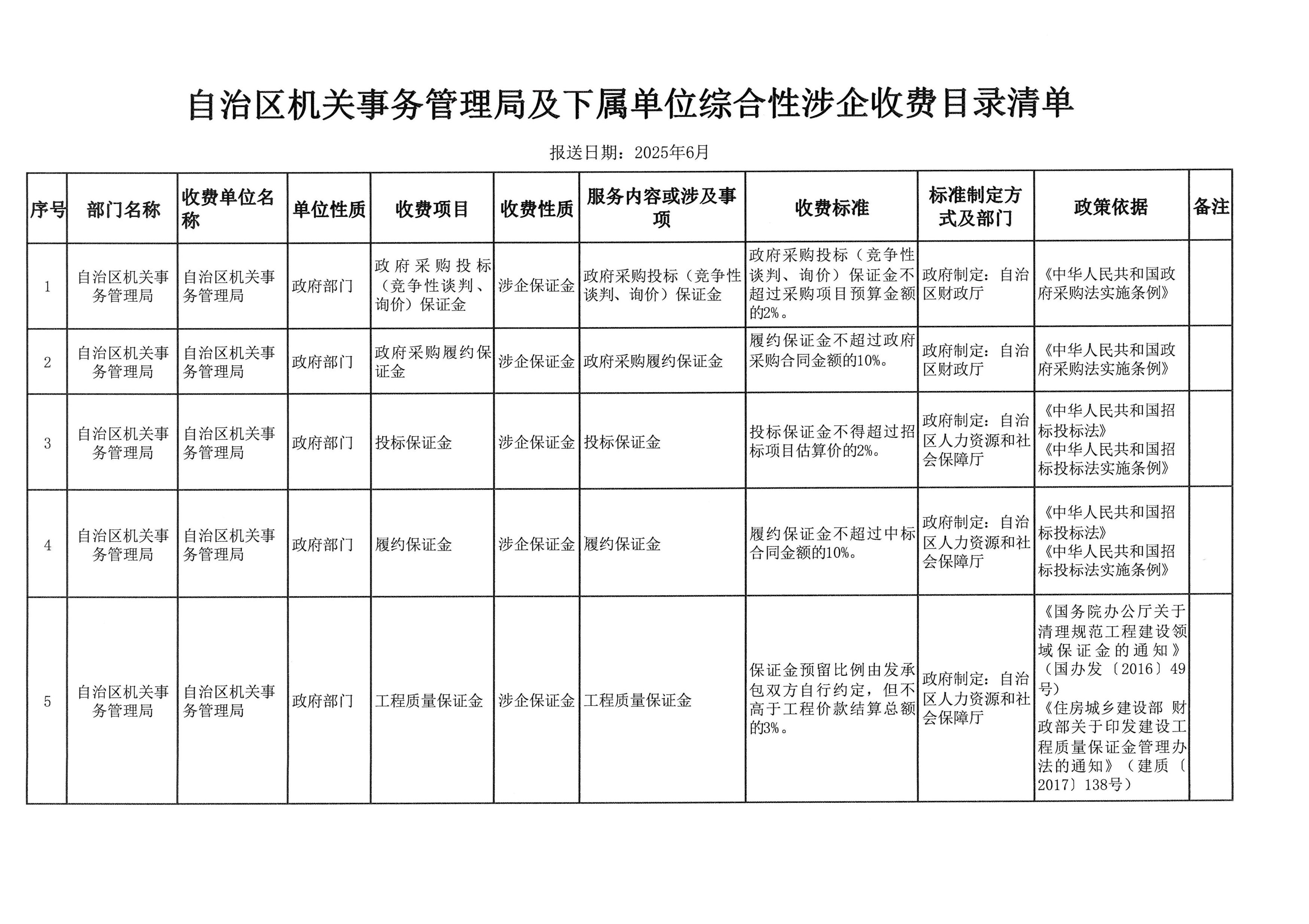 自治区机关事务管理局及下属单位综合性涉企业收费目录清单(2025.8.18)