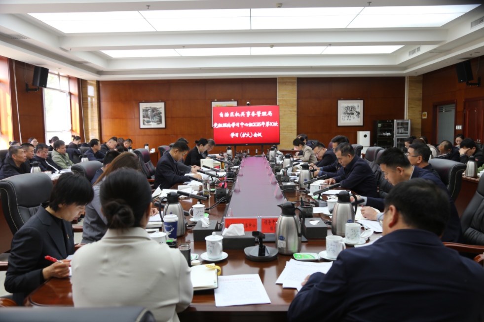 10月24日,自治区机关事务管理局召开2025年党组理论学习中心组第10次学习(扩大)会议,局党组成员、各基层党组织书记、局属单位班子成员、四级以上调研员、局机关全体干部50余人参加会议。