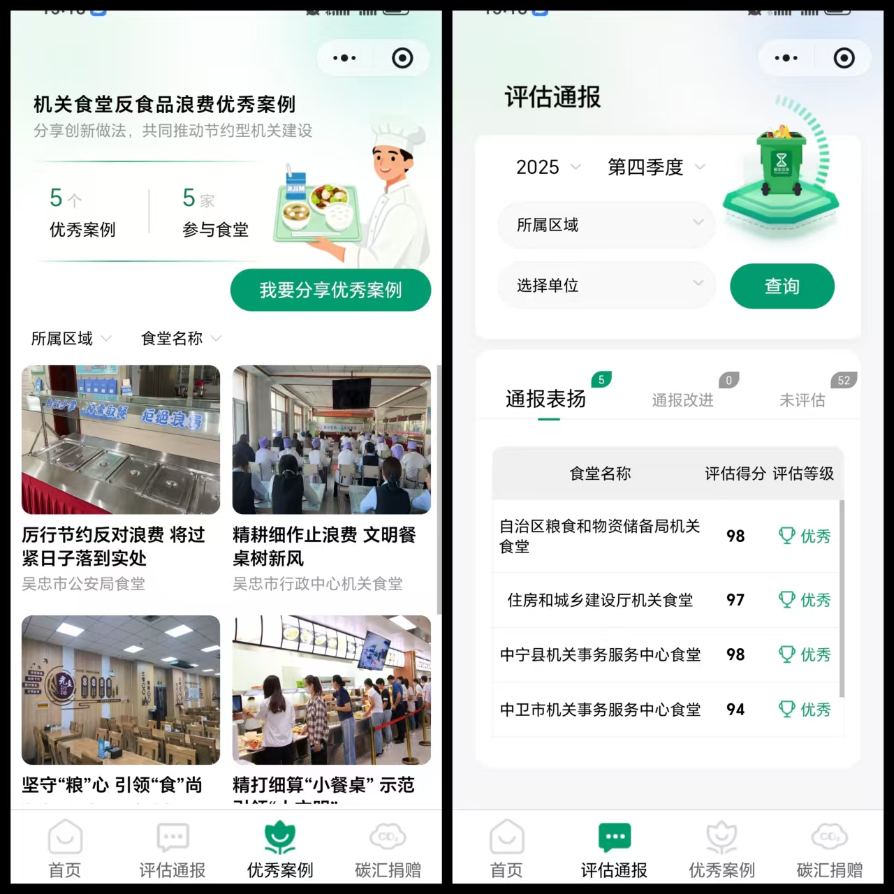 本次抽查评估,评出优秀等次9家、良好等次19家、合格等次13家,并在全区范围内进行通报,实现了全区机关食堂反食品浪费工作成效评估全覆盖。营造了浪费可耻、节约光荣的浓厚氛围,倡导机关干部职工形成简约适度、绿色低碳的生活方式,发挥党政机关在绿色低碳发展中的示范引领作用。